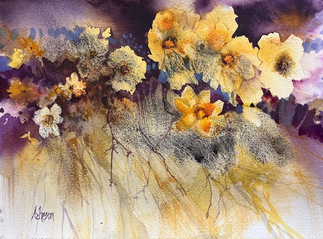 J’aime mêler le figuratif et l’abstrait, et laisser le spectateur prendre le contrôle de l’histoire que j’aurais initiée. L’art m’intéresse quand il exprime la vision du monde née chez l’artiste. Pour moi l’aquarelle est une aventure permanente et une histoire d’amour sans fin !